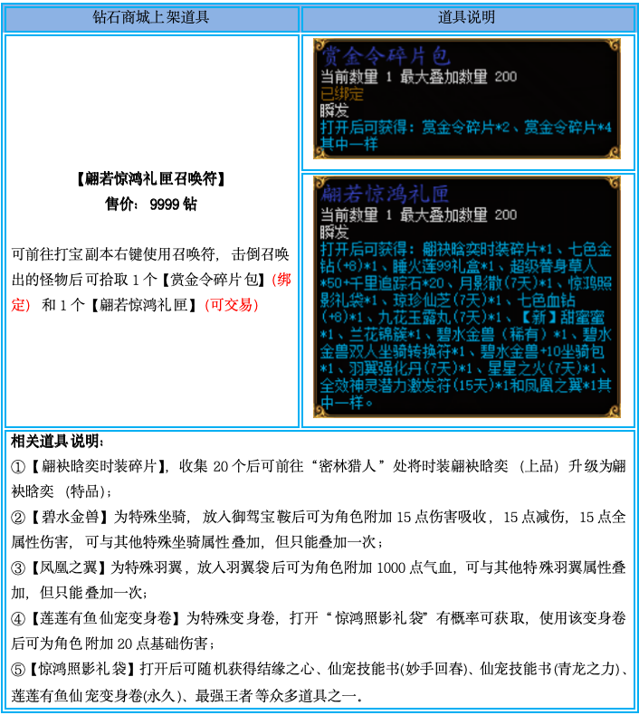 2、【翩若惊鸿礼匣召唤符】仅限钻石商城购买,通过摆摊购买、互相交易、邮件领取、拍卖购买等非钻石商城购买方式获得的,均不计算在活动内;