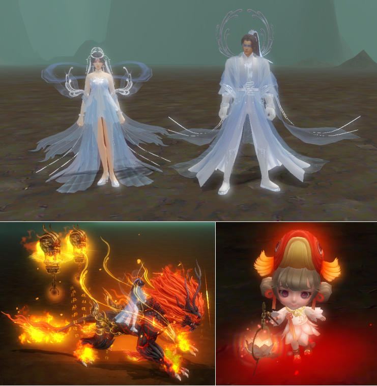 仅展示翩袂晗奕(特品)、碧水金兽坐骑+10、莲莲有鱼仙宠变身效果图