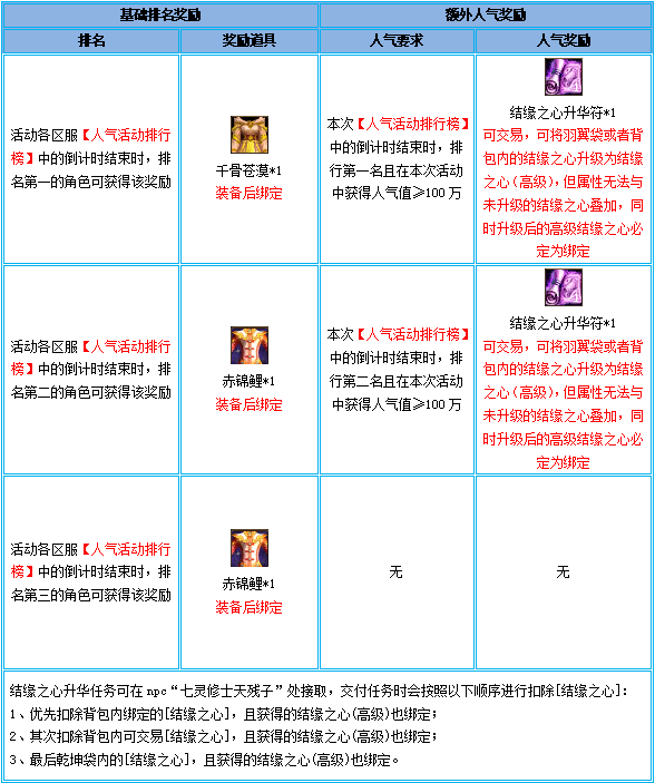 2、本活动开启前,角色已经获得的人气值不会计算在内,必须要在活动开启后获得的人气值才为有效;